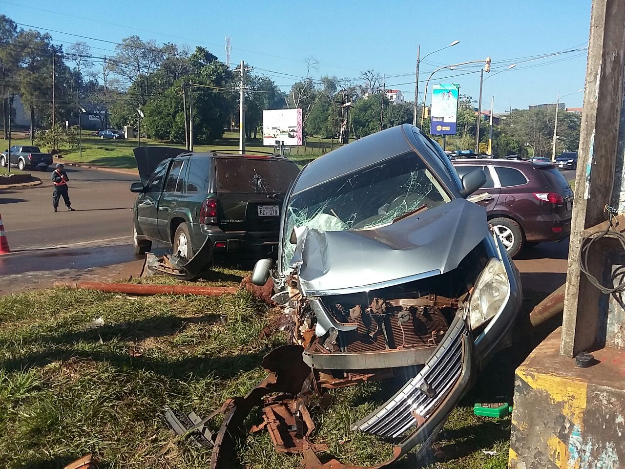 Cuando los policías llegaron al sitio conversaron con el conductor de la mencionada camioneta, quien les dijo que salía del PCC hacia la supercarretera y que por razones de desperfecto de los semáforos del lugar, cruzó la avenida para dirigirse a Ciudad del Este. Fue ese momento en que su vehículo fue chocado por el automóvil Toyota, que se dirigía con dirección a Itaipu.