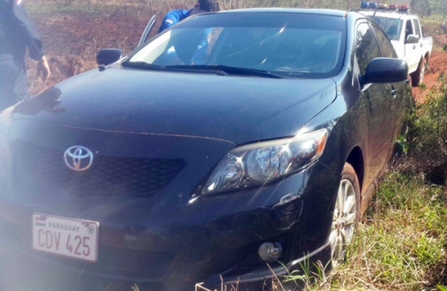Los intervinientes encontraron abandonado el automóvil utilizado por los maleantes, en una zona despoblada del Km 18, Monday.